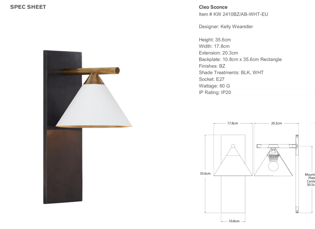 Kelly Wearstler Cleo Sconce Height 14 Width 7 Becker Minty