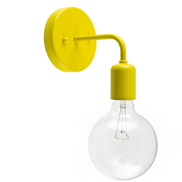 Yellow wall sconce. This sconce features one e26 medium screw base socket. This simple sconce can work as accent lighting bathroom lighting or to illuminate wall art. Wall lighting brings ambient light to a room allows you to highlight architectural details and works of art and can even act as task lighting in some cases.